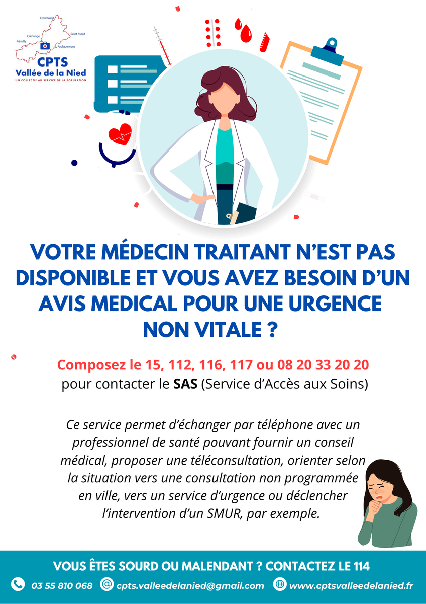 Nous ne sommes pas un cabinet médical, pour les urgences : appeler le 15 ou 112